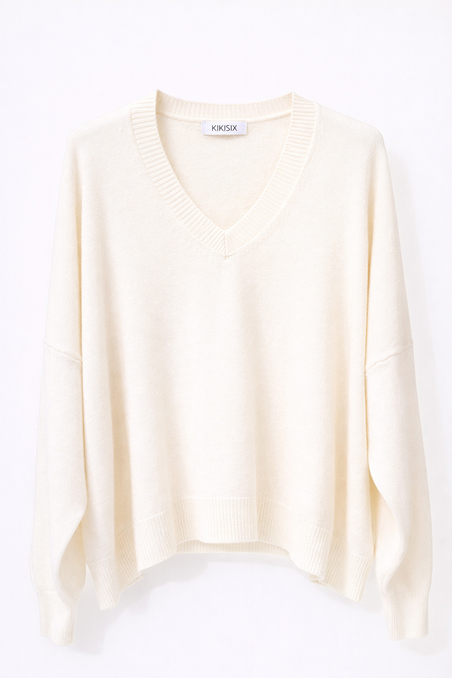 Maglia basica oversize in viscosa con spalla calata e scollo a v