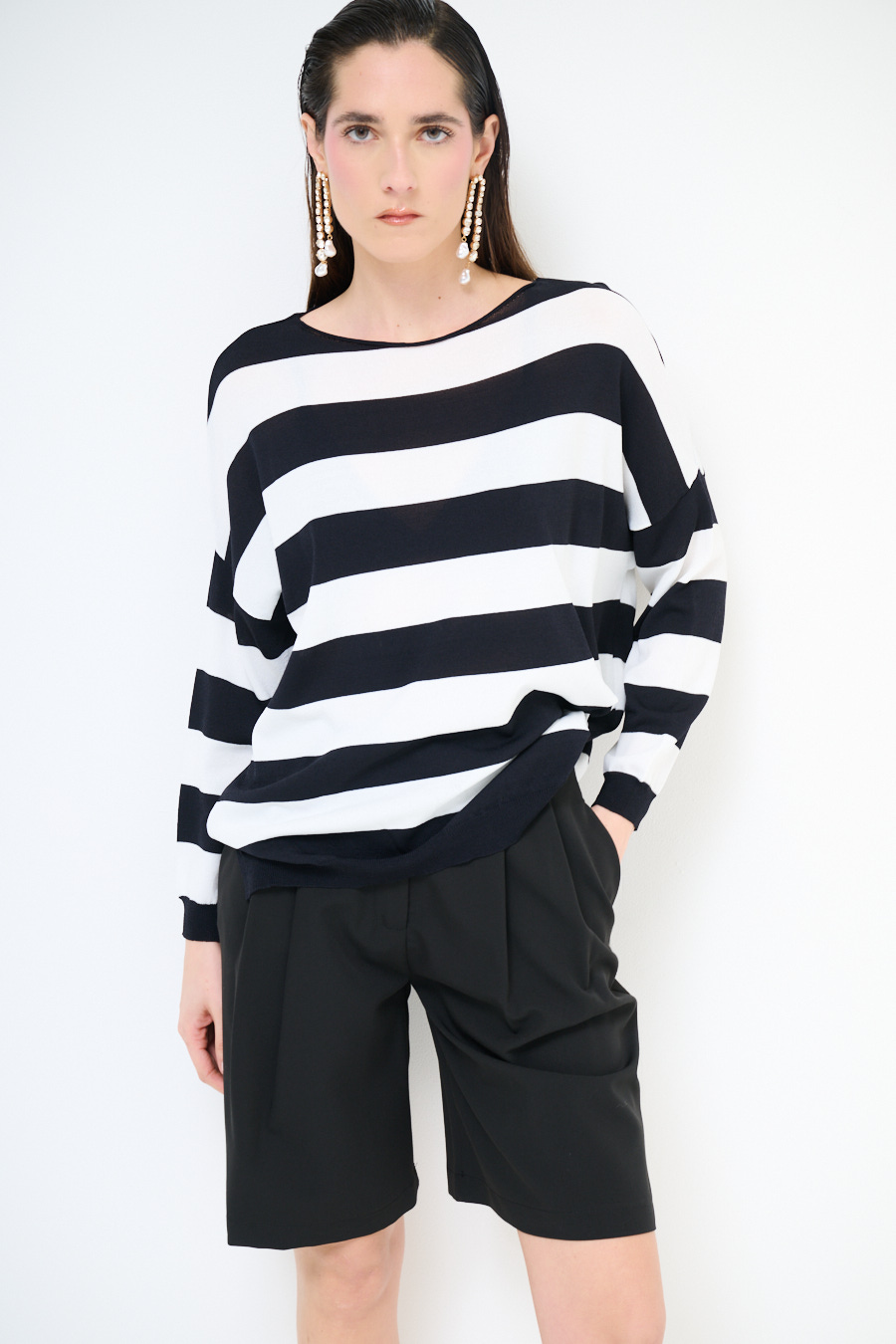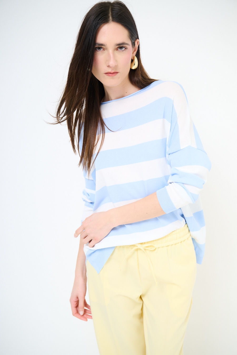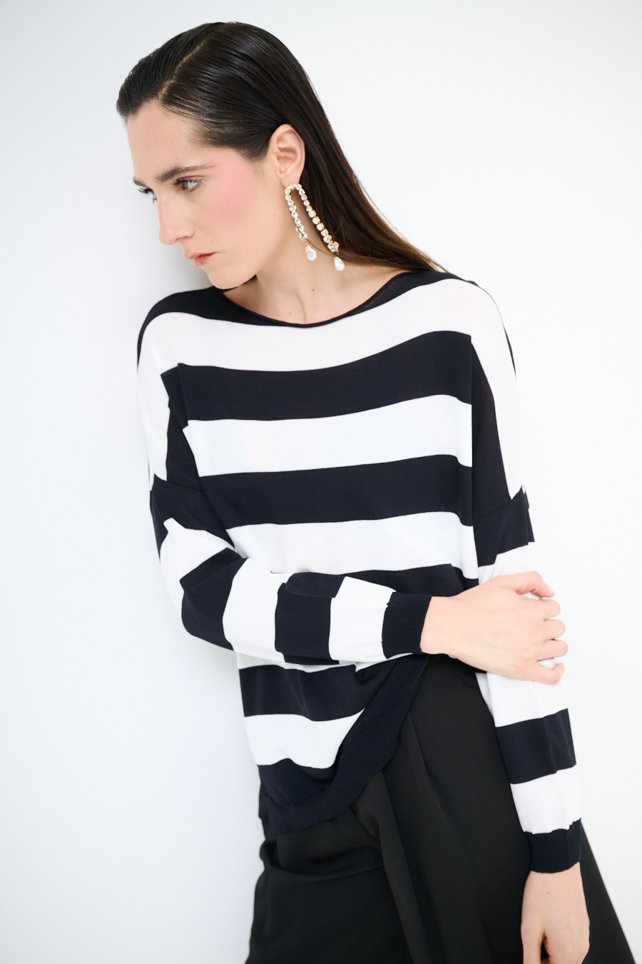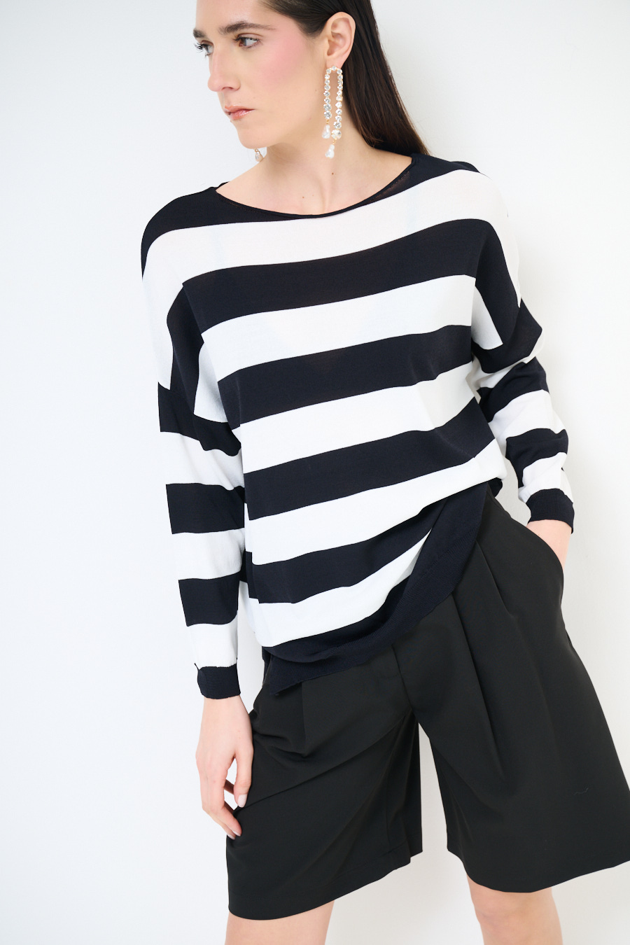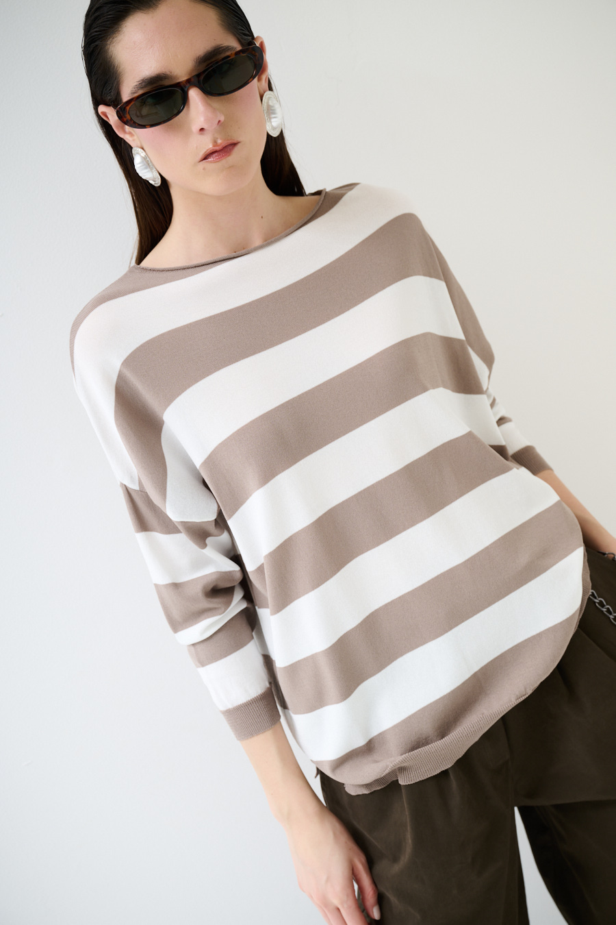 Maglia in viscosa con scollo a barca a scatolina e con spalla calata