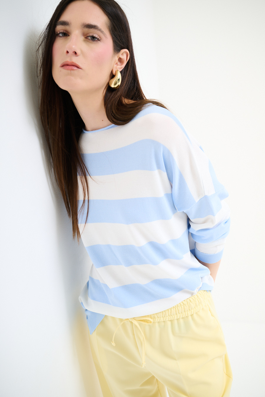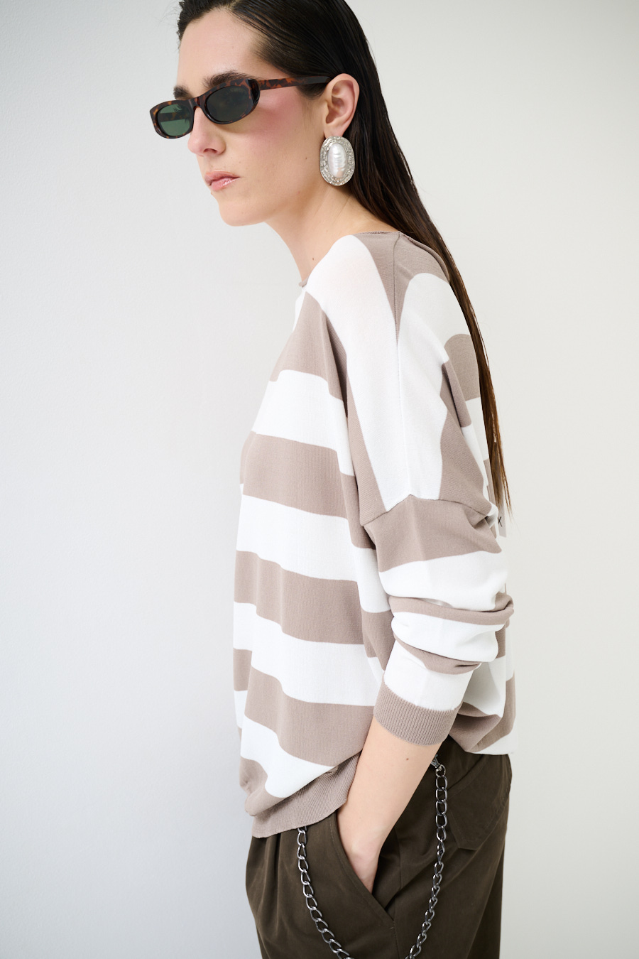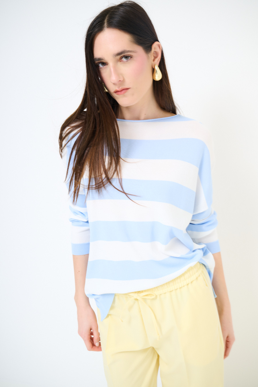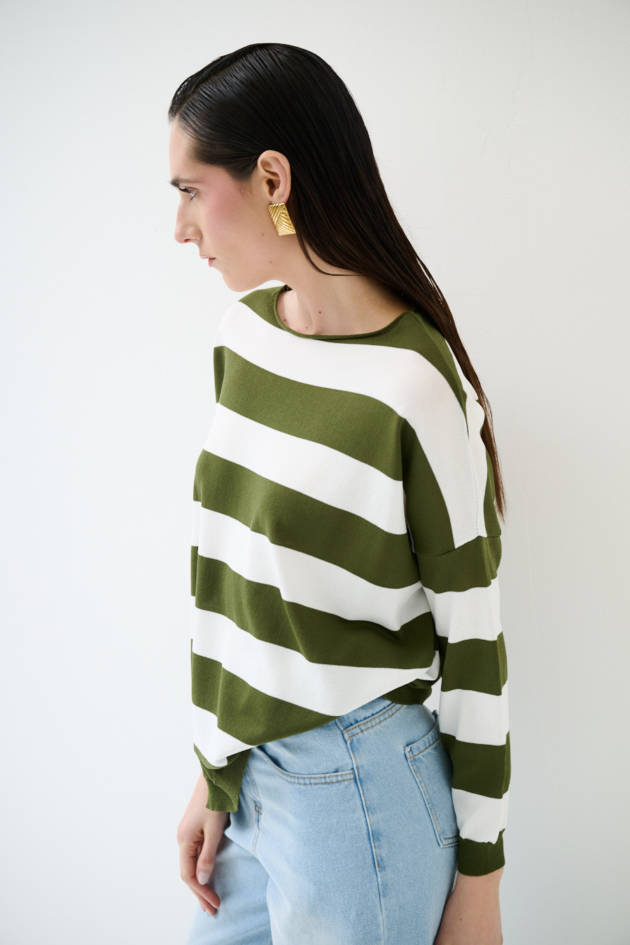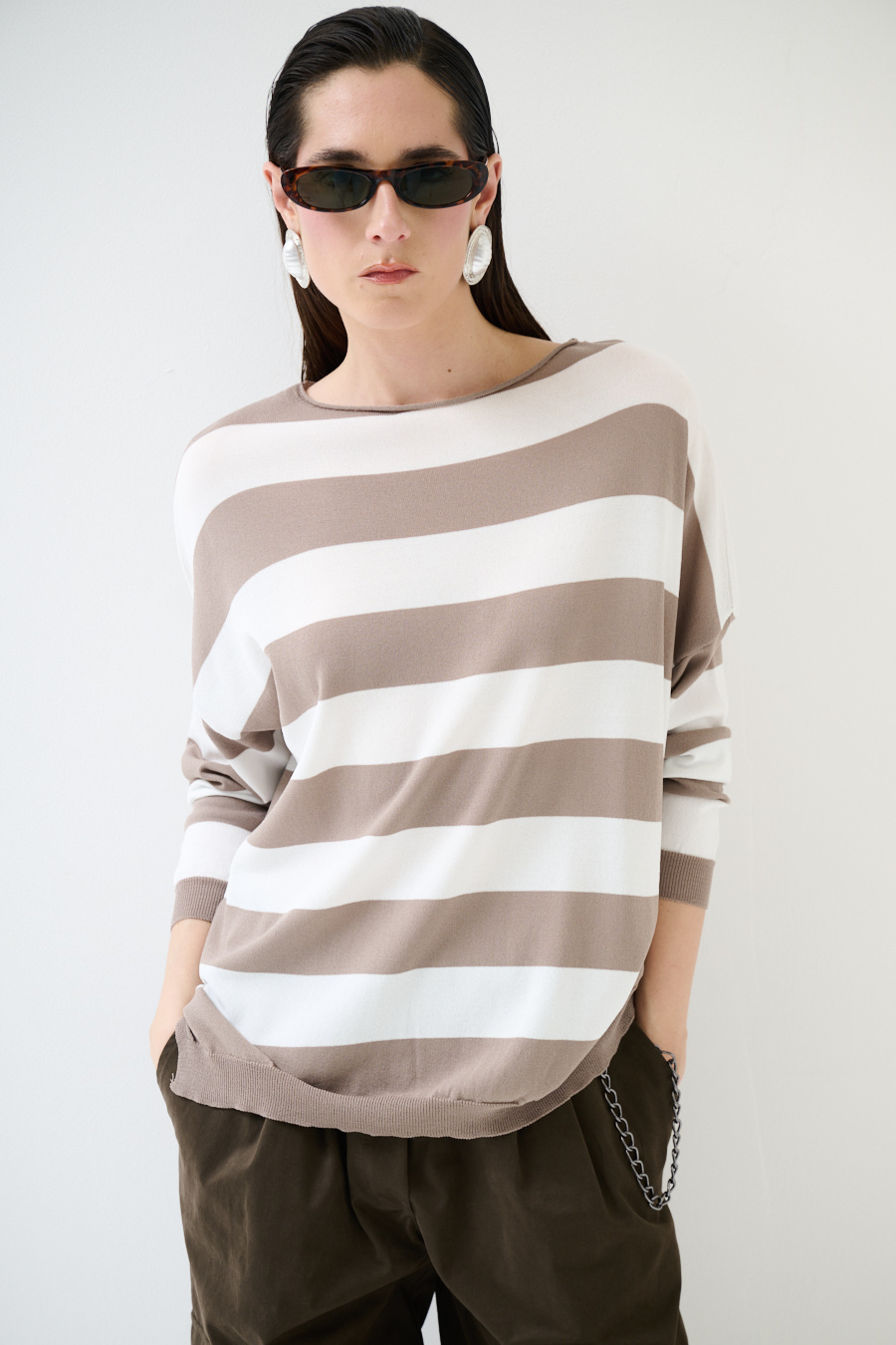 Maglia in viscosa con scollo a barca a scatolina e con spalla calata