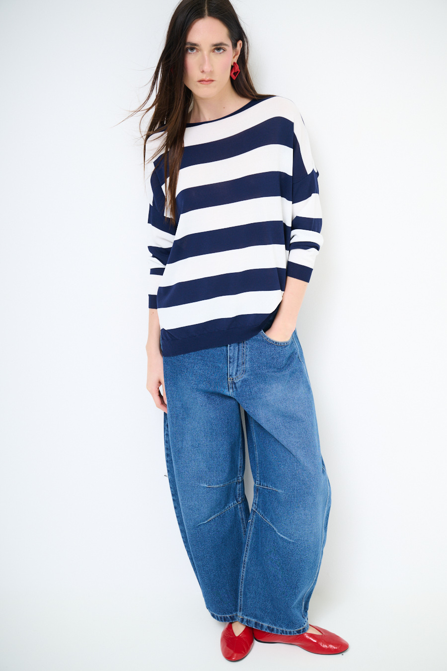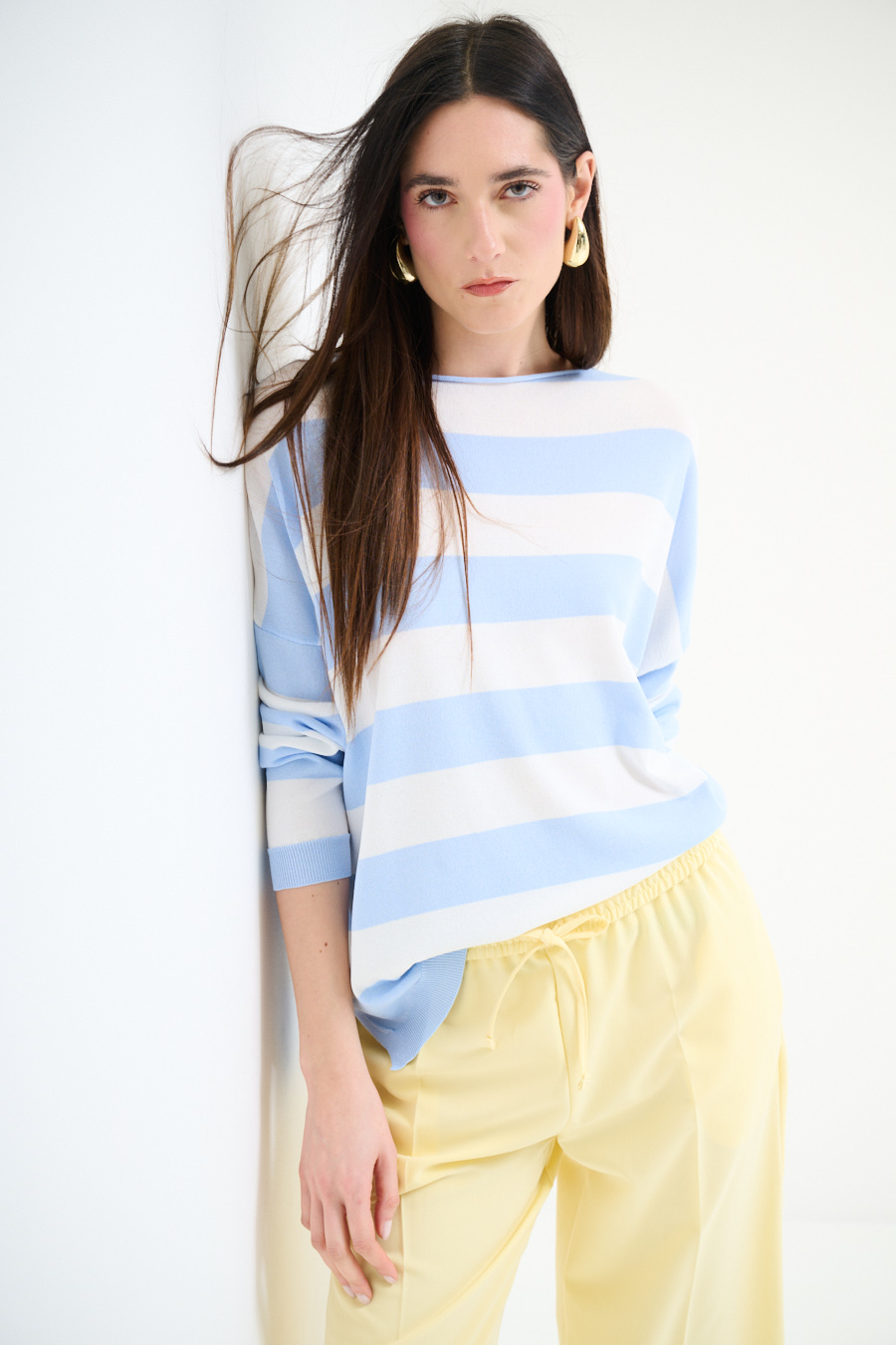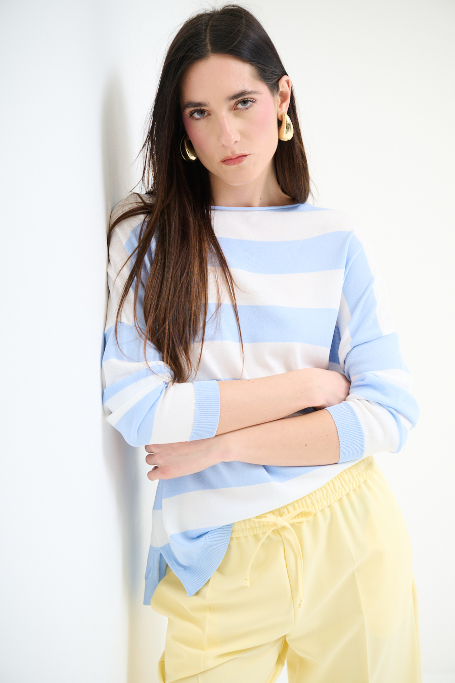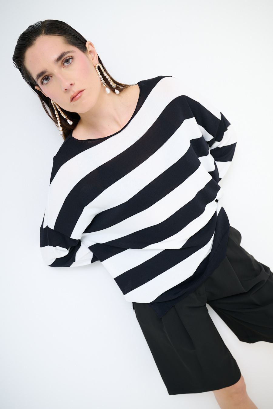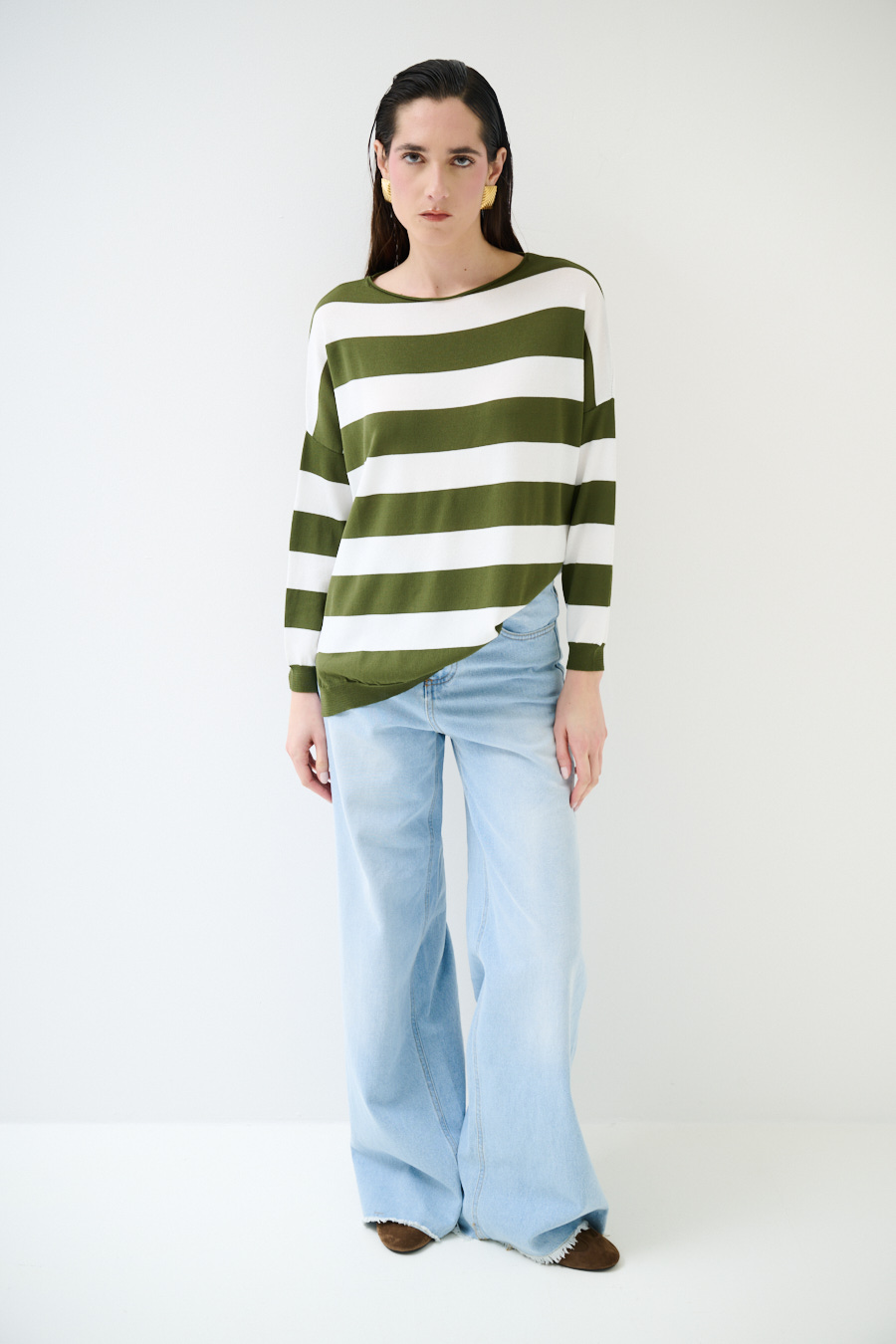 Maglia in viscosa con scollo a barca a scatolina e con spalla calata