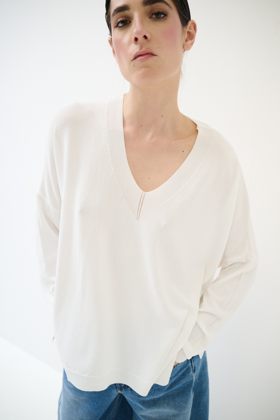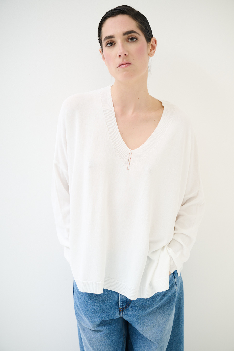 MAGLIA OVER SCOLLO V PROFONDO BIANCO