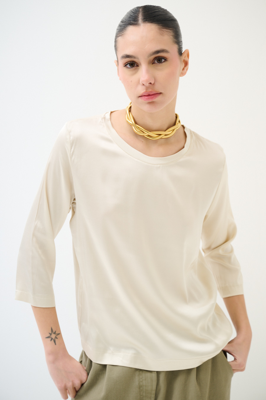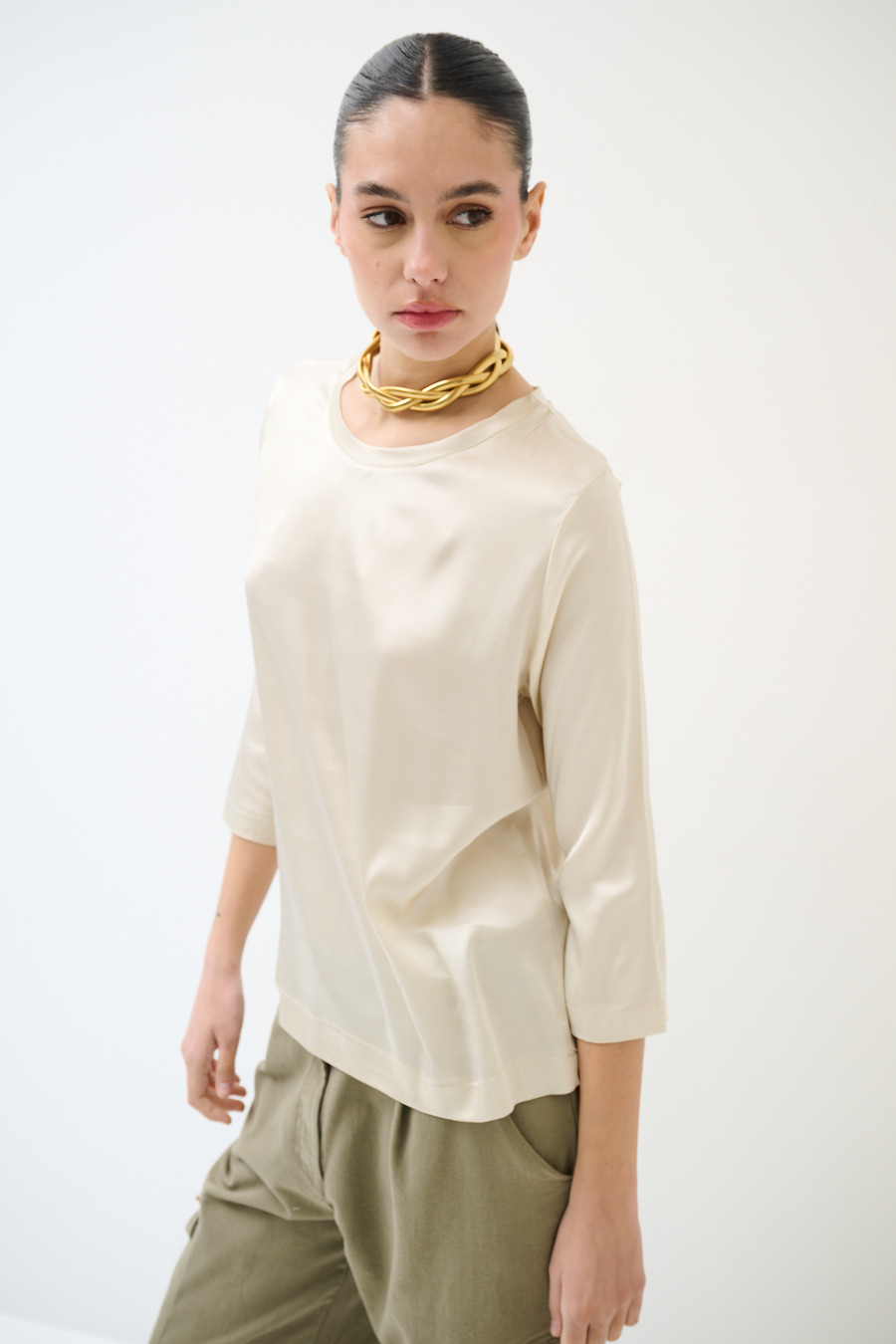 Casacca in raso di viscosa paricollo con manica a 3/4