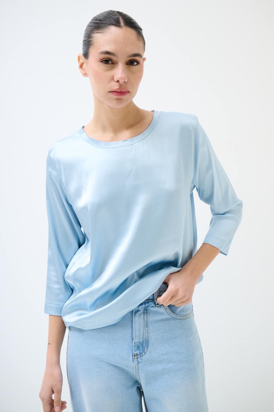 MAGLIA PARICOLLO MANICA 3/4 IN RASO CELESTE