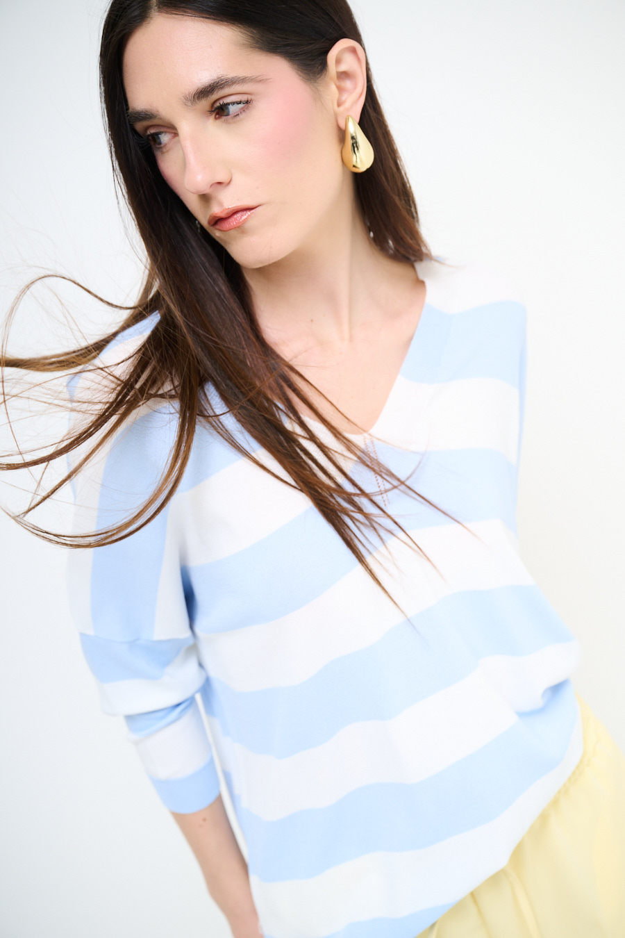 MAGLIA RIGATA CON SCOLLO V PROFONDO CELESTE