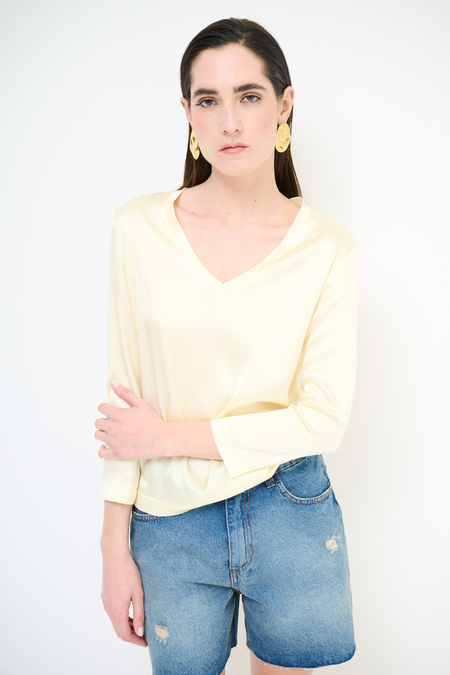 Casacca in raso di viscosa con ampio scollo a v e manica a 3/4