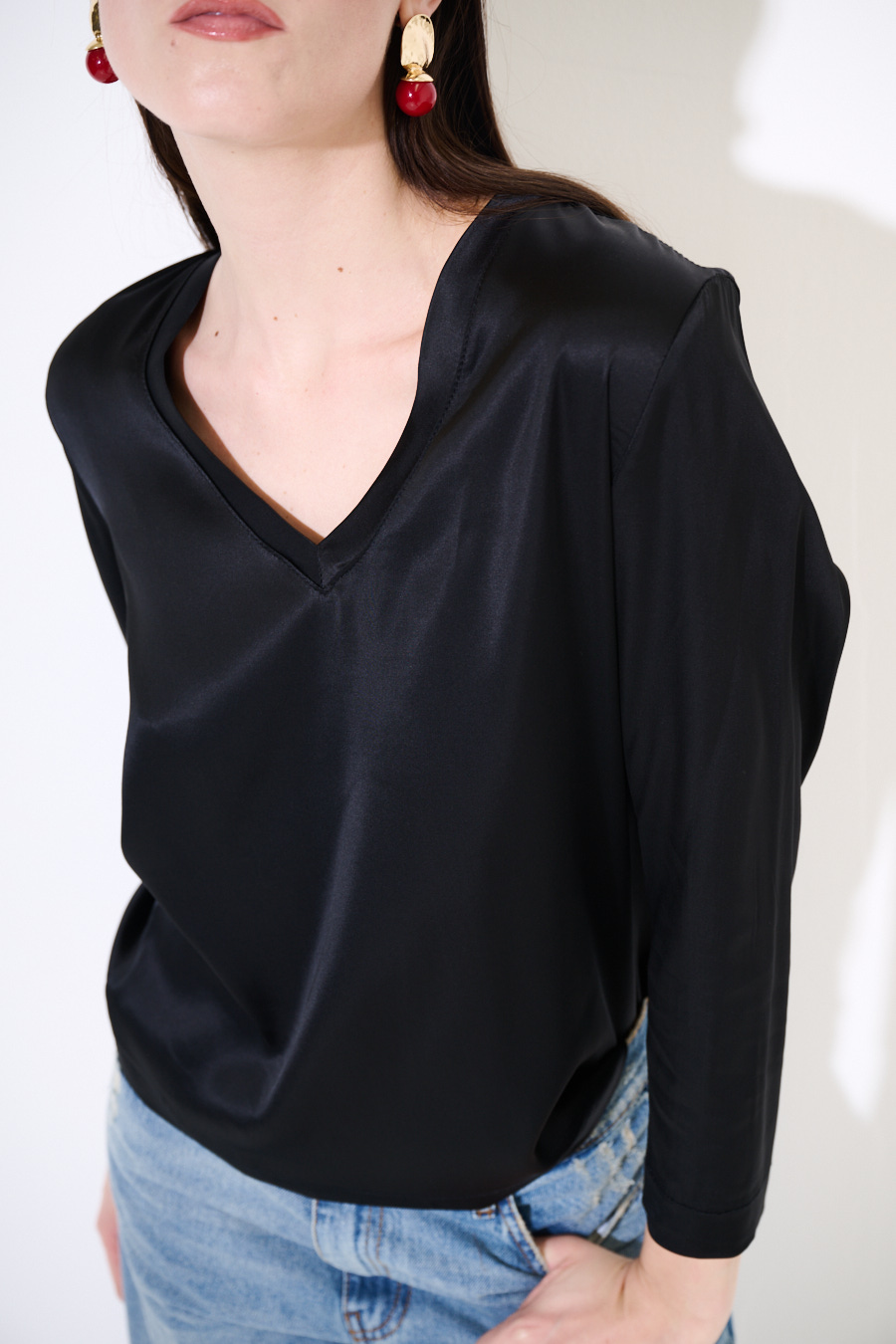 Casacca in raso di viscosa con ampio scollo a v e manica a 3/4