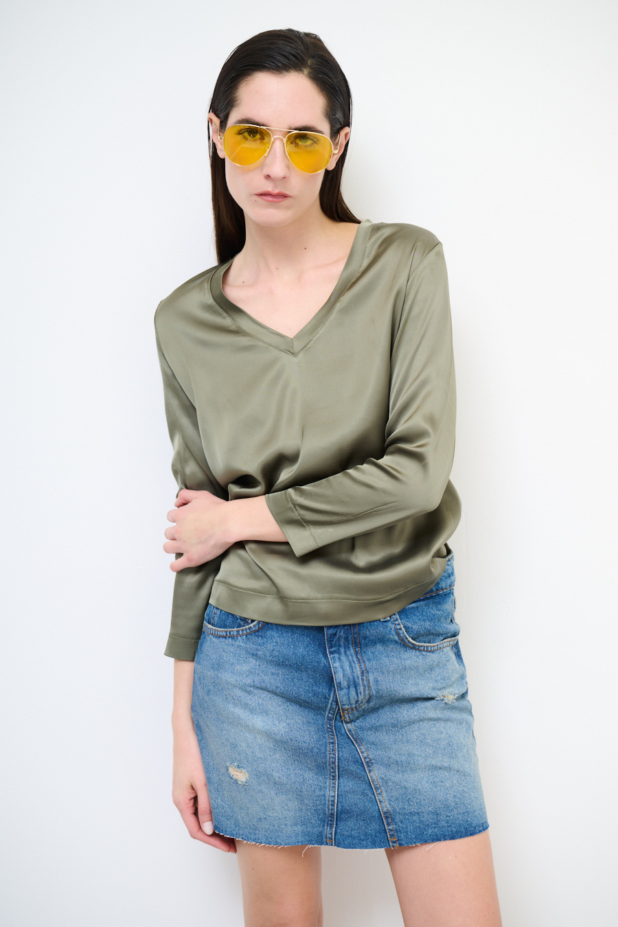 Casacca in raso di viscosa con ampio scollo a v e manica a 3/4
