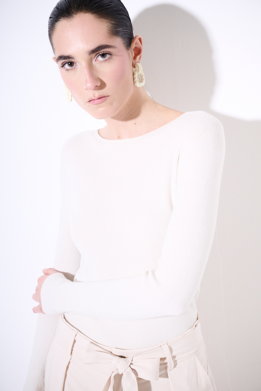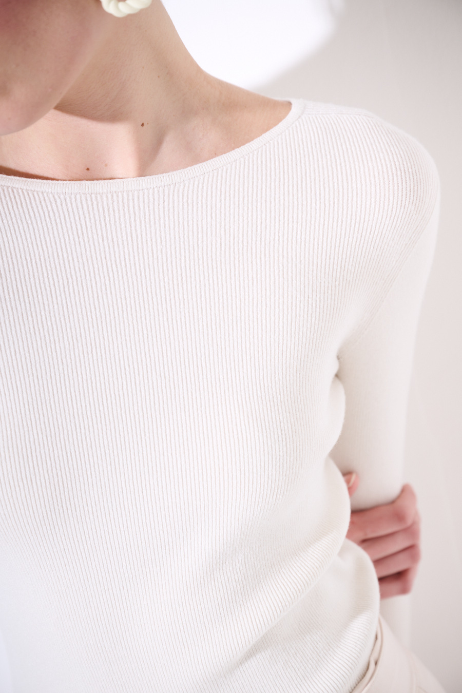 Maglia con scollo a barca in viscosa a costine sottili