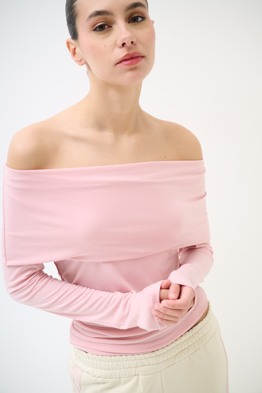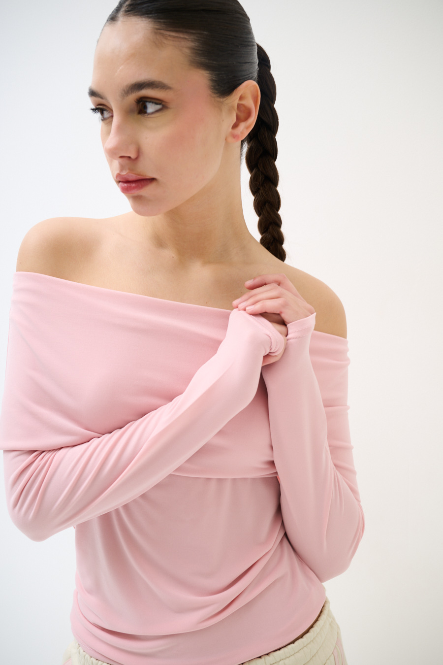 Maglia con scollo shiffer con manica lunga in tessuto stretch