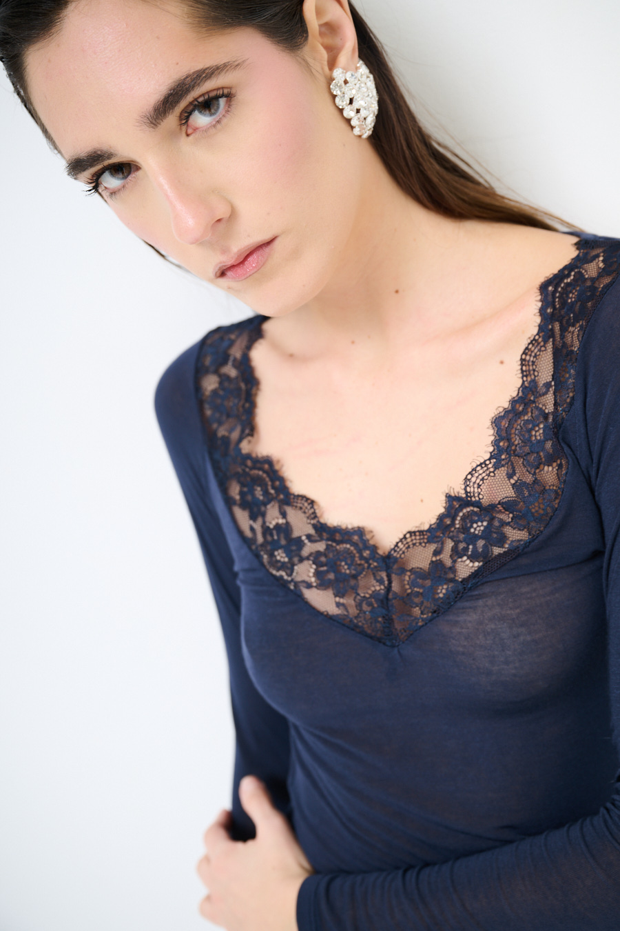 MAGLIA SCOLLO V CON PIZZO MODAL