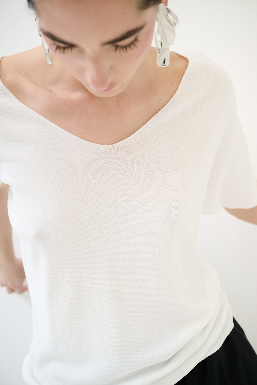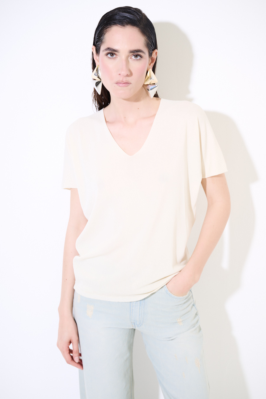 Maglia basic in viscosa con scollo a v e mezza manica