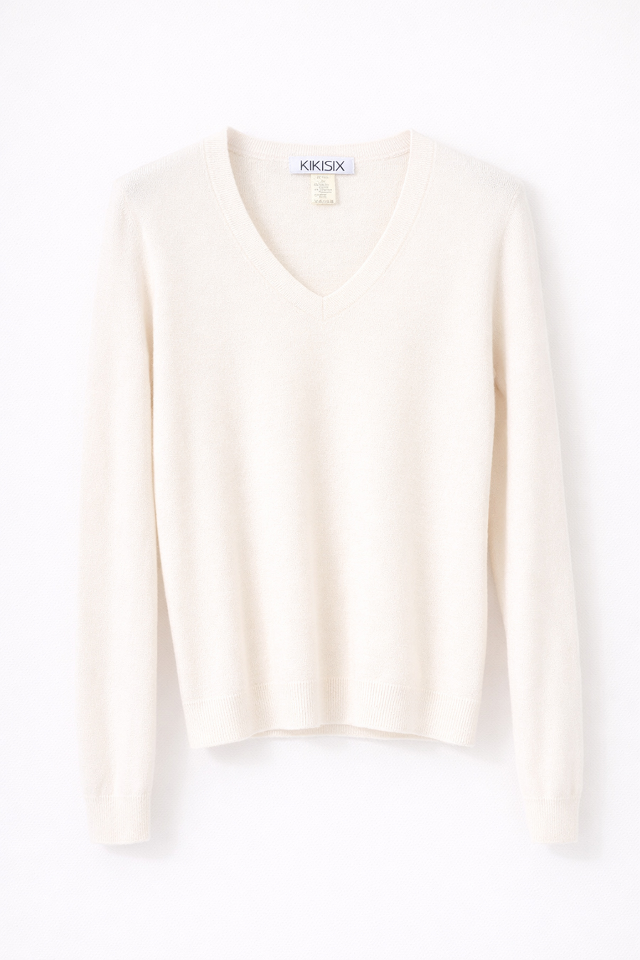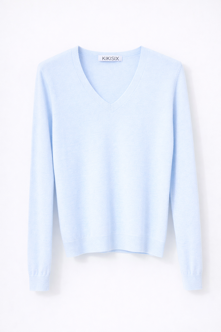 Maglia con scollo a v in viscosa con girocollo, fondo e polsini a coste