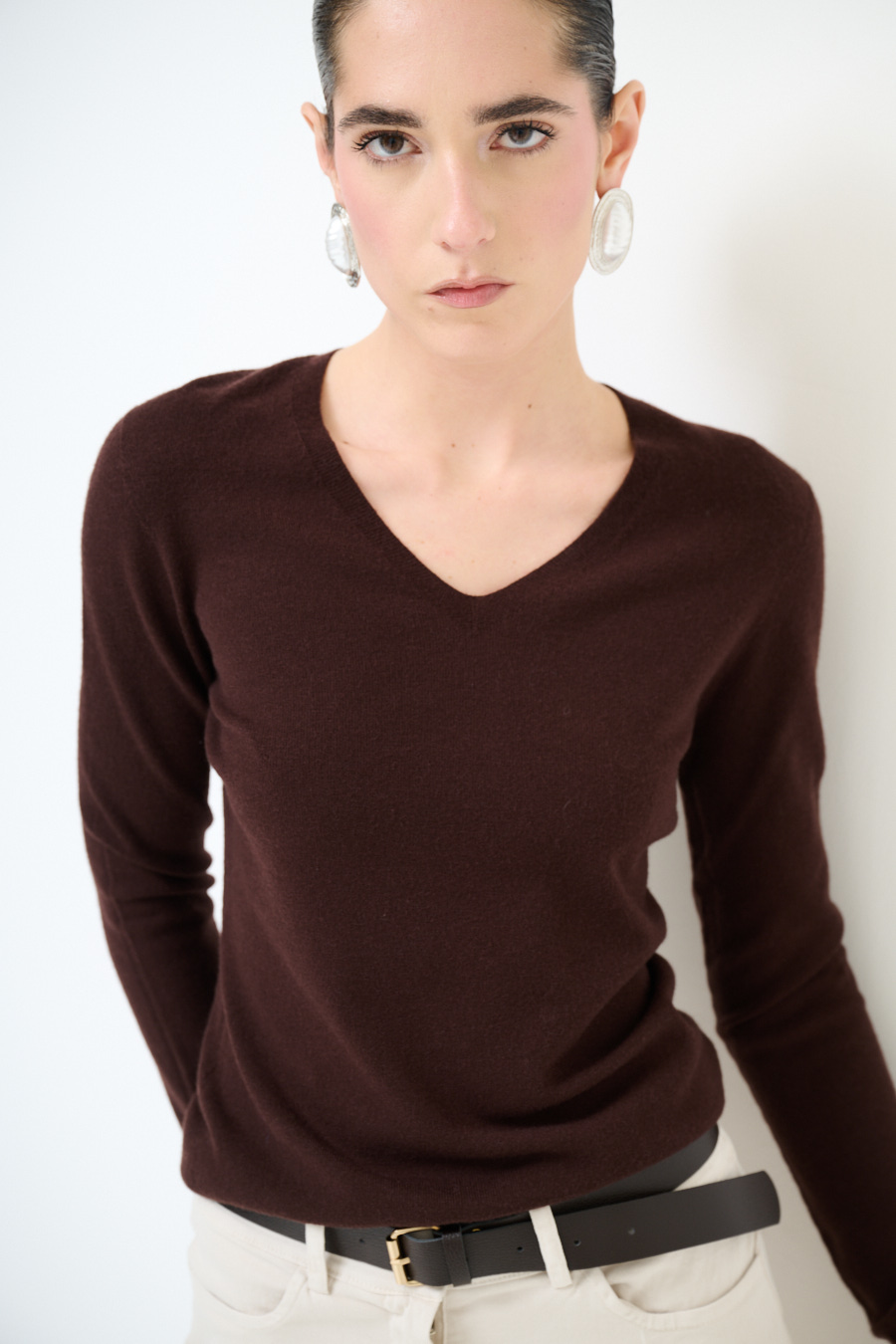 MAGLIA SCOLLO V VISCOSA INTEGRALE MORO