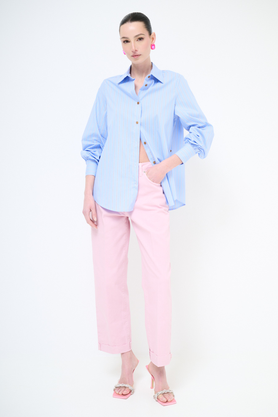 PANTA CHINO CON RISVOLTO E TAGLIO VIVO ROSA