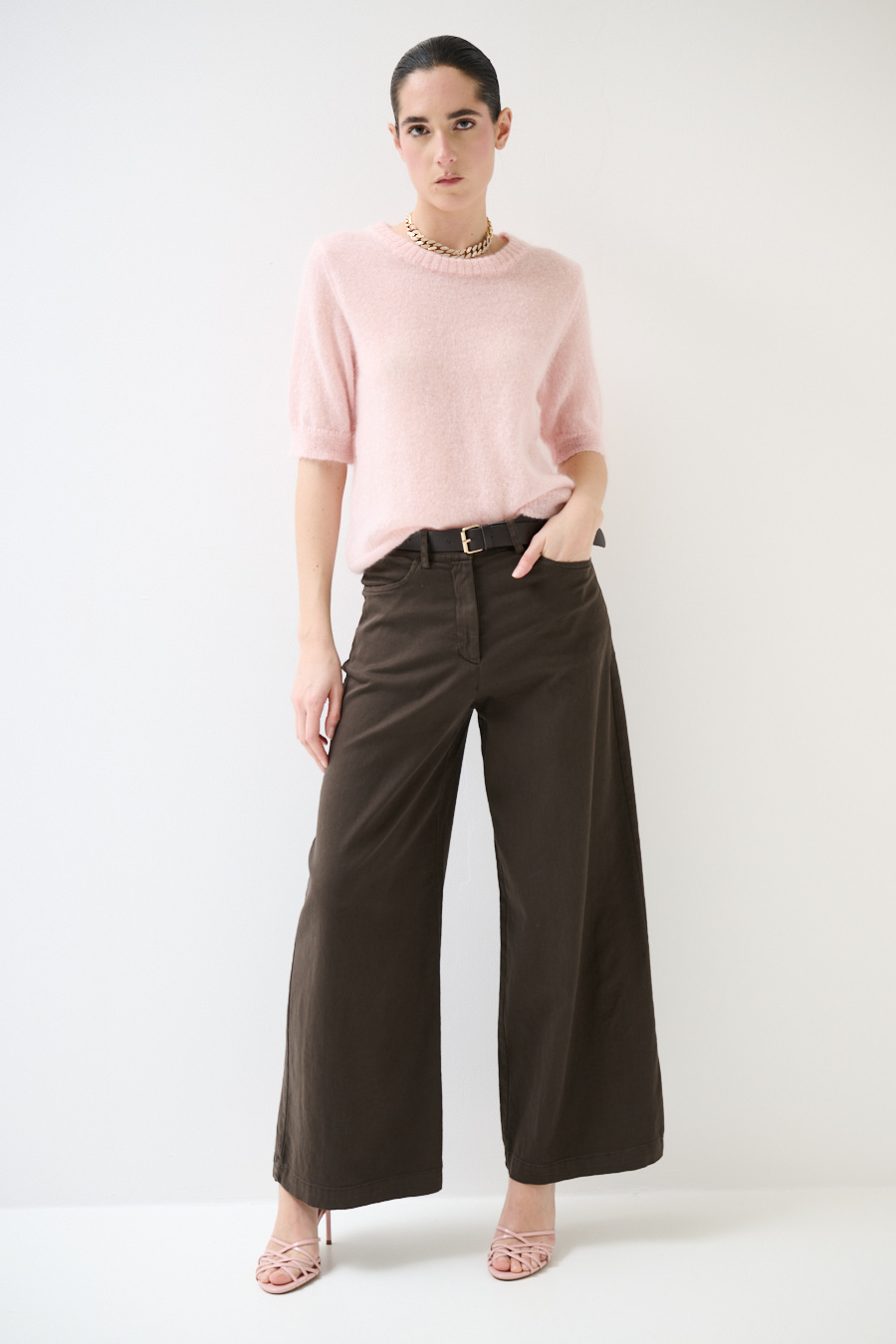 Pantalone a palazzo dritto com ampie tasche sul retro, elasticizzato sul retro in vita e con cintura