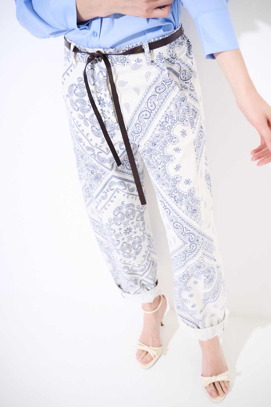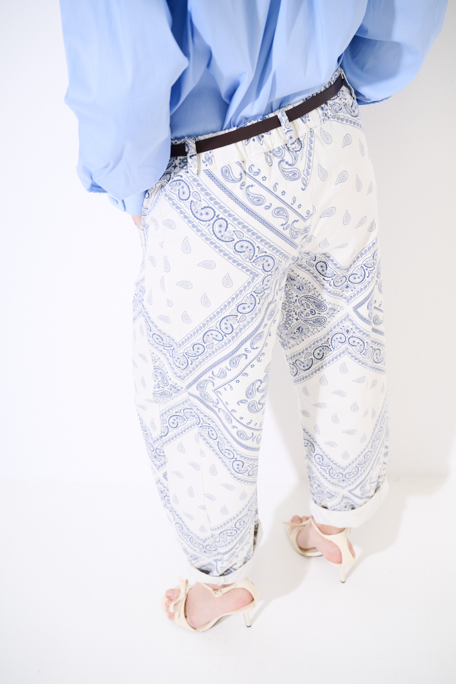 Pantalone balloon fit in gabardina leggera con stampa bandana, elasticizzato sul retro e con cintura