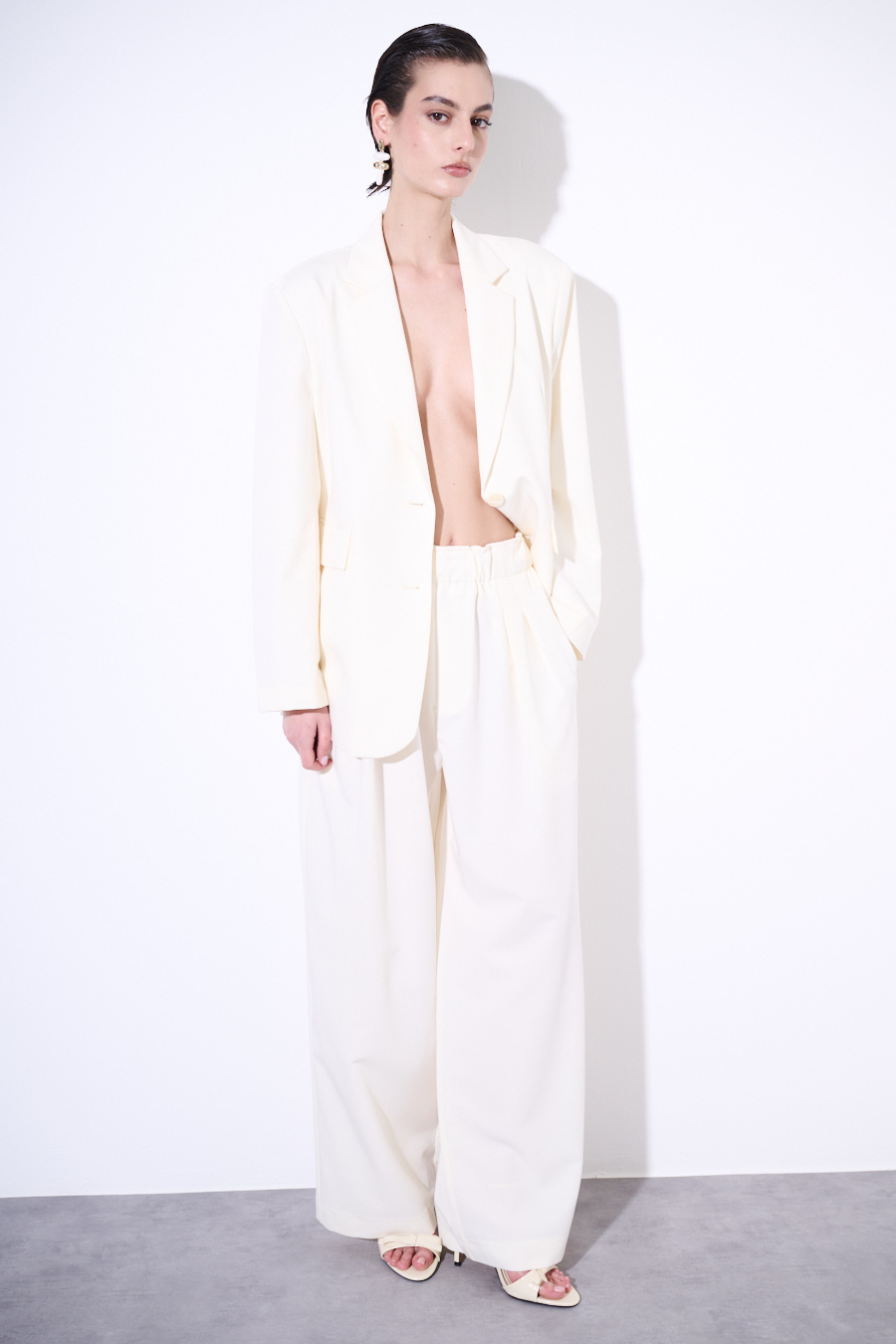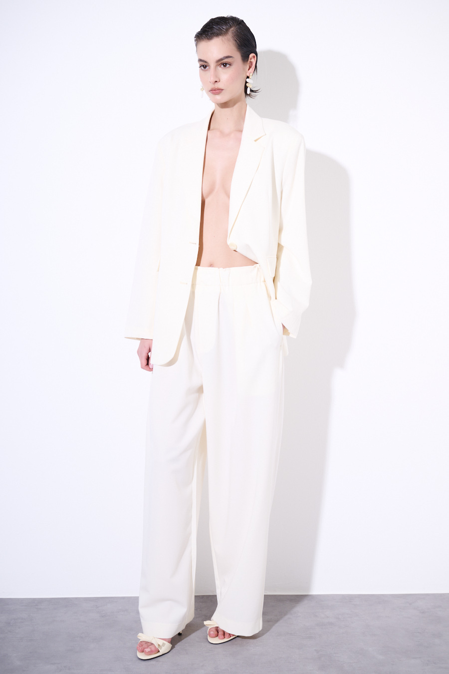 PANTALONE A GAMBA LARGA CON VITA ALTA E PIEGHE FRONTALI BURRO