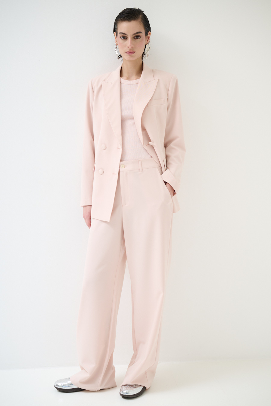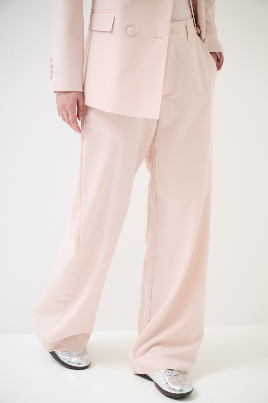 PANTALONE A GAMBA LARGA CON VITA ELASTICIZZATA SUL RETRO ROSA