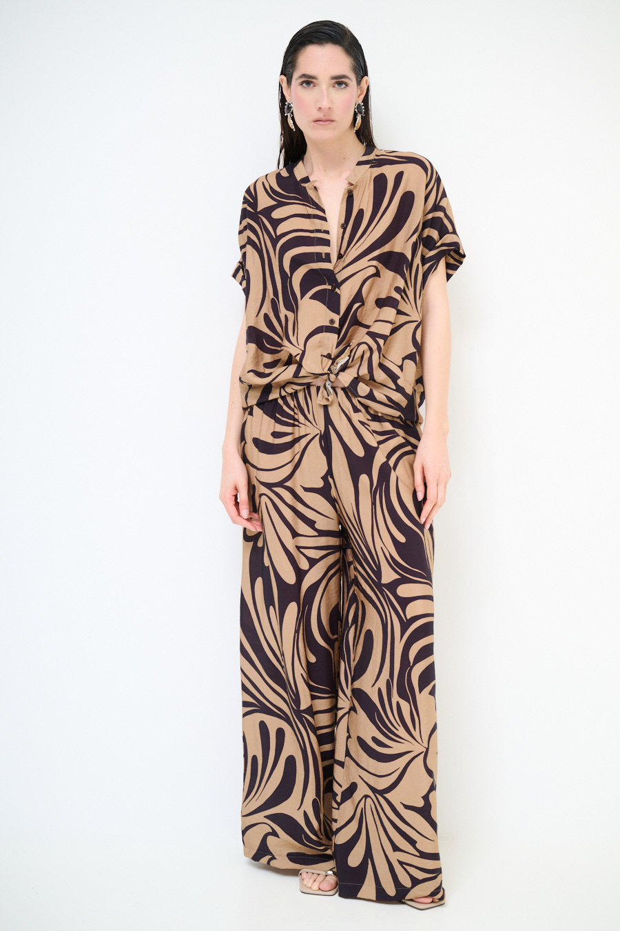 Pantalone ampio a fantasia con elastico in vita e coulisse