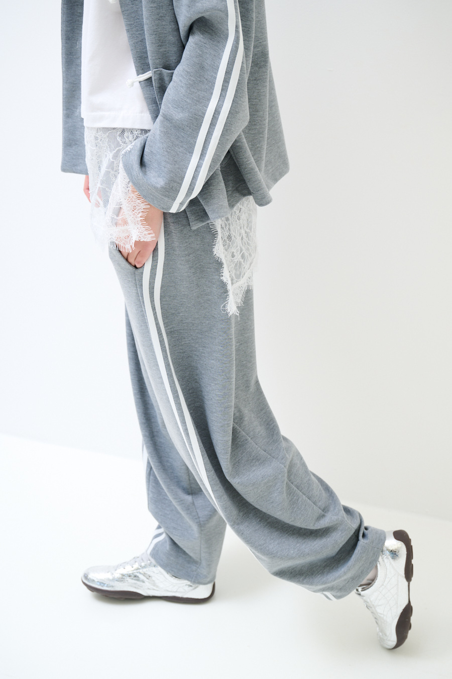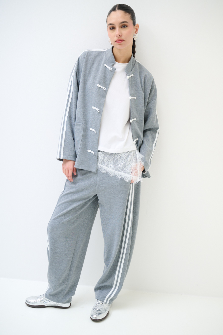 Pantalone balloon fit con bande oblique a contrasto e taschino a filetto nella cucitura