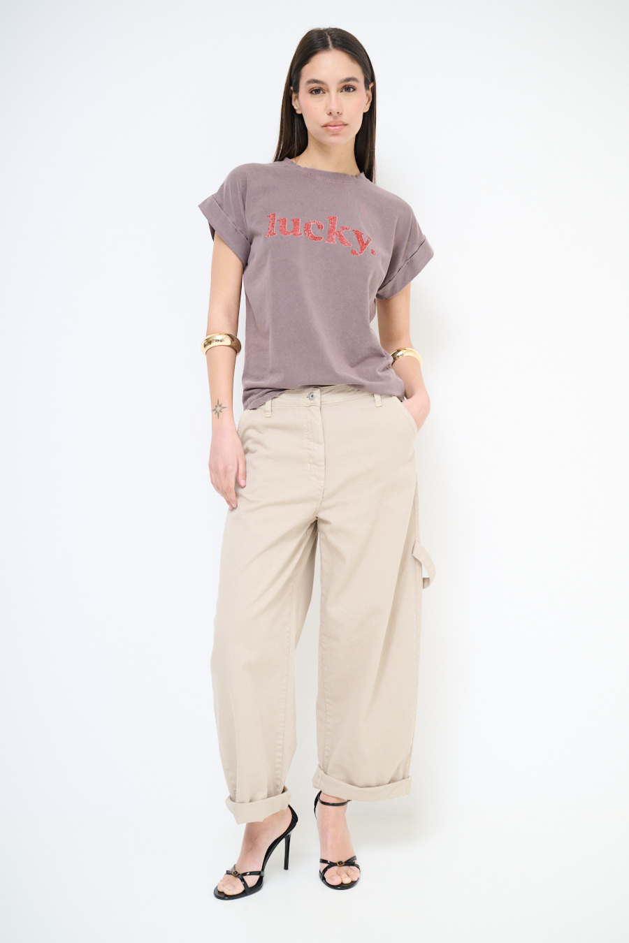 Pantalone bull in gabardina ampio con portamartello laterale e maxi tasche sul retro