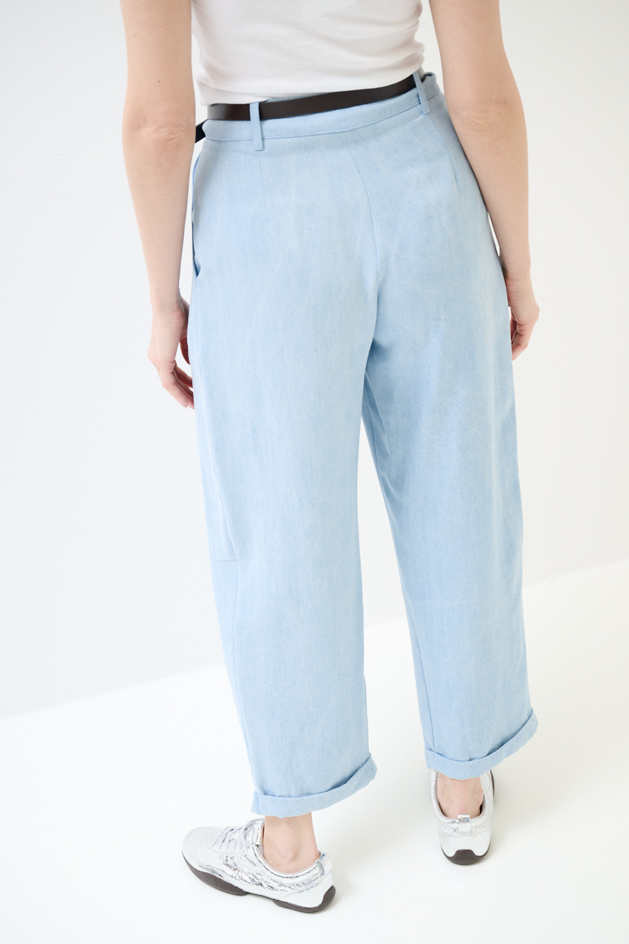 PANTALONE CON MULTI PINCES E CINTURA DENIM