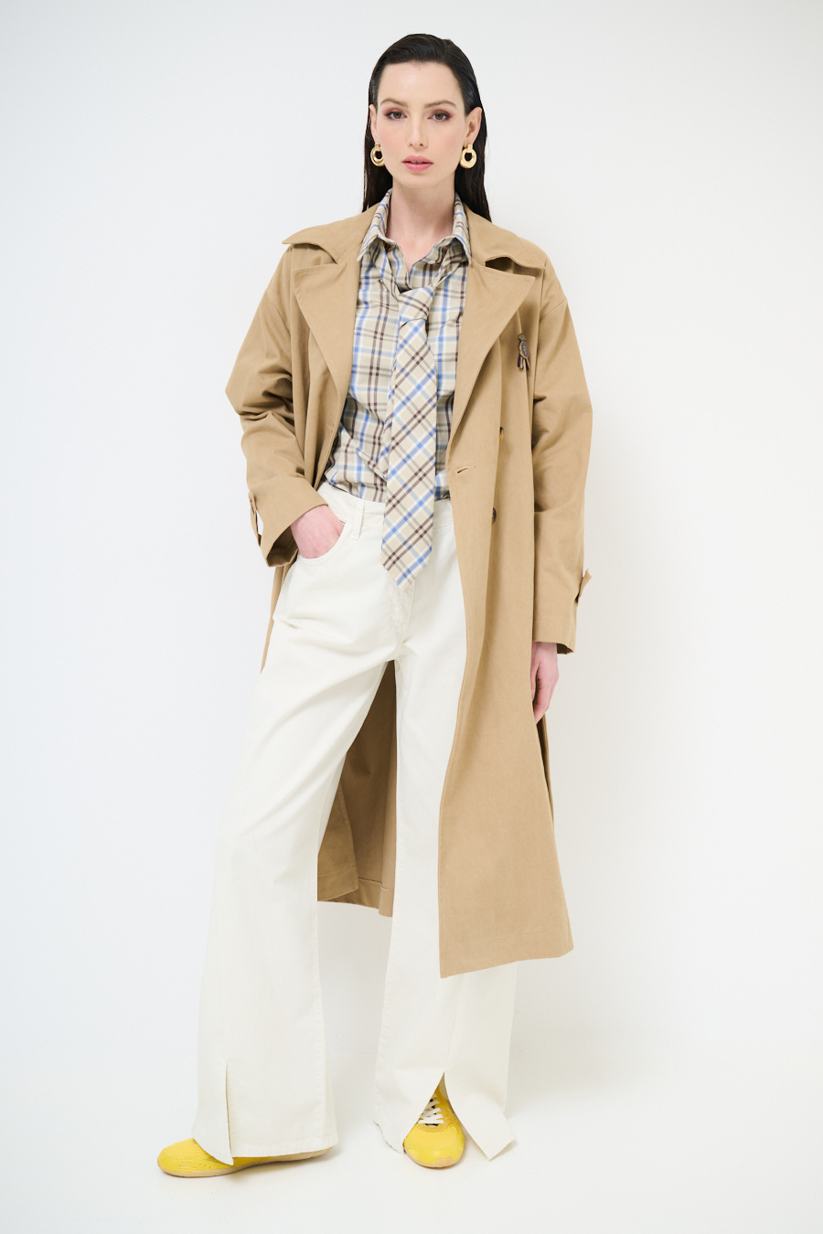 PANTALONE DRITTO CON SPACCHI IN GABARDINA MEDIA BURRO