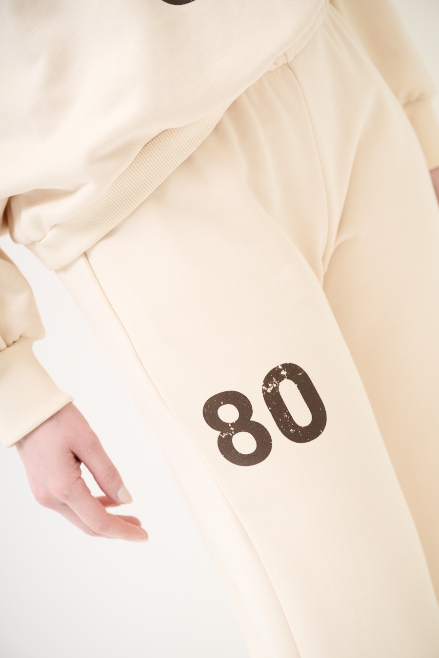 Palazzo sweatpants in brushed fabric with vintage number print on the side and elastic waist