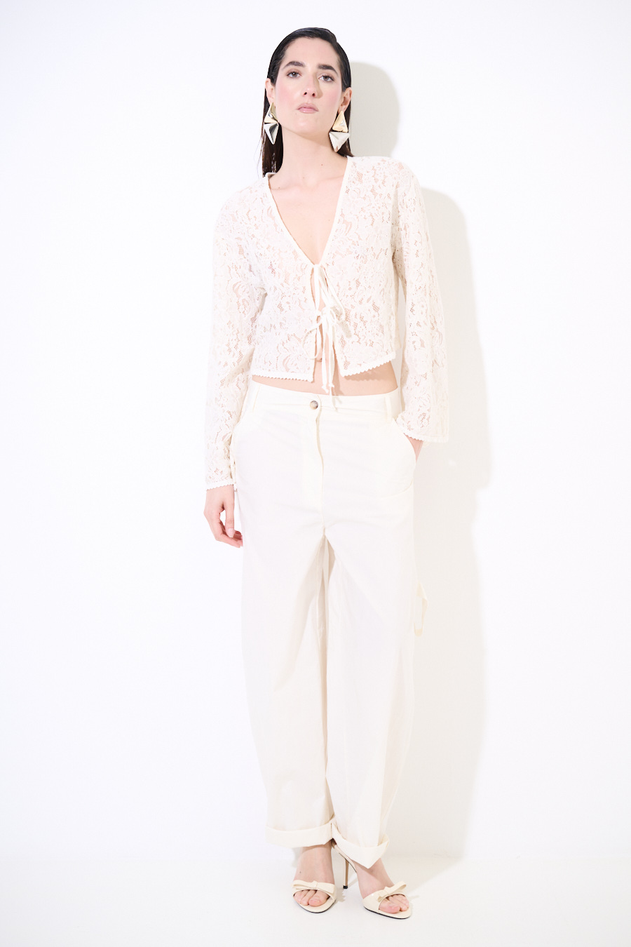 PANTALONE IN TELA CON TASCONI DIETRO E LACCIO