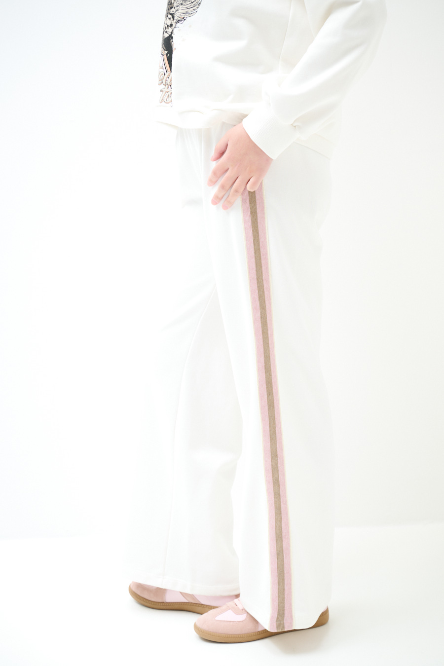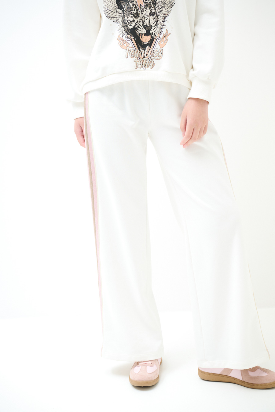 Wide brushed sweatpants with elastic waist and contrast side stripes