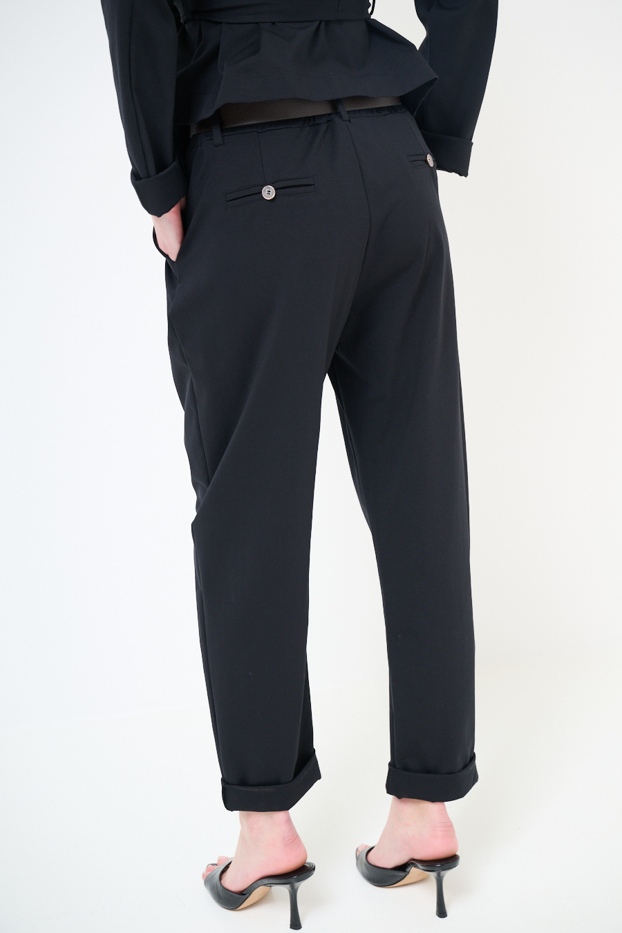 PANTALONE OVETTO PUNTO MILANO CON PINCES E CINTURA