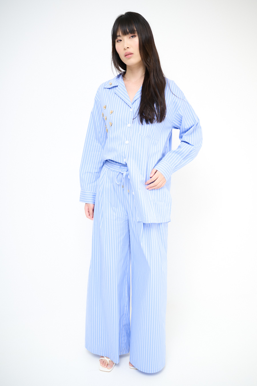 Pantalone pigiama in popeline a righe conampio fascione elastico in vita