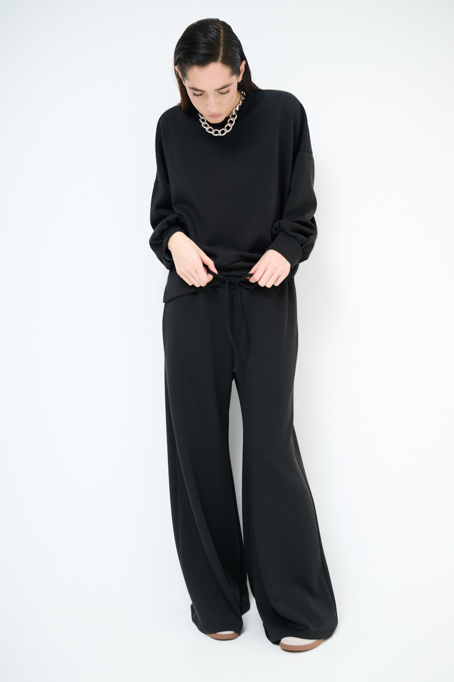 PANTAPALAZZO IN FELPA MODAL CON COULISSE NERO