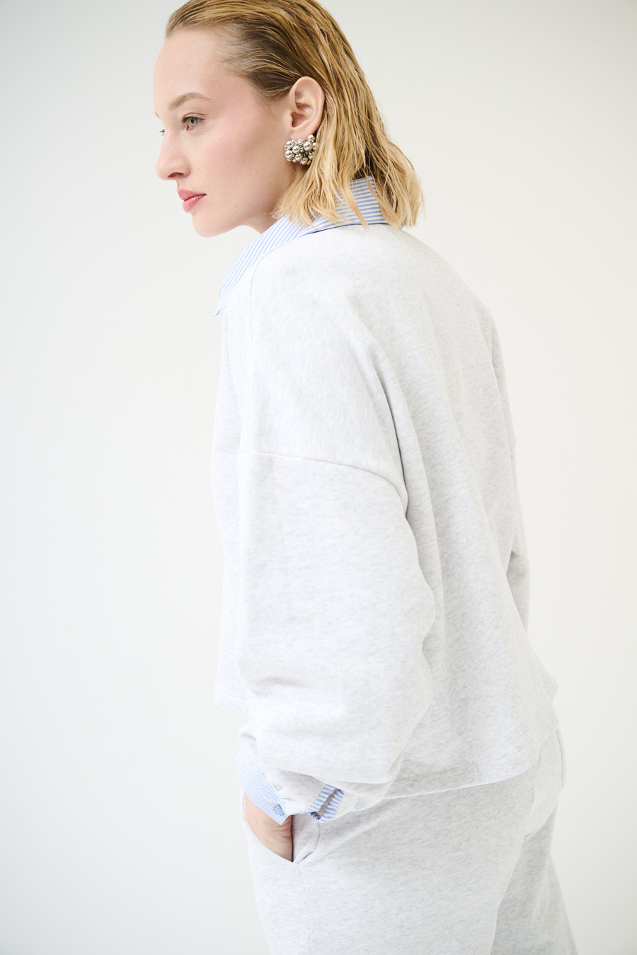 Brushed polo sweatshirt with dropped shoulder and striped poplin collar and cuff