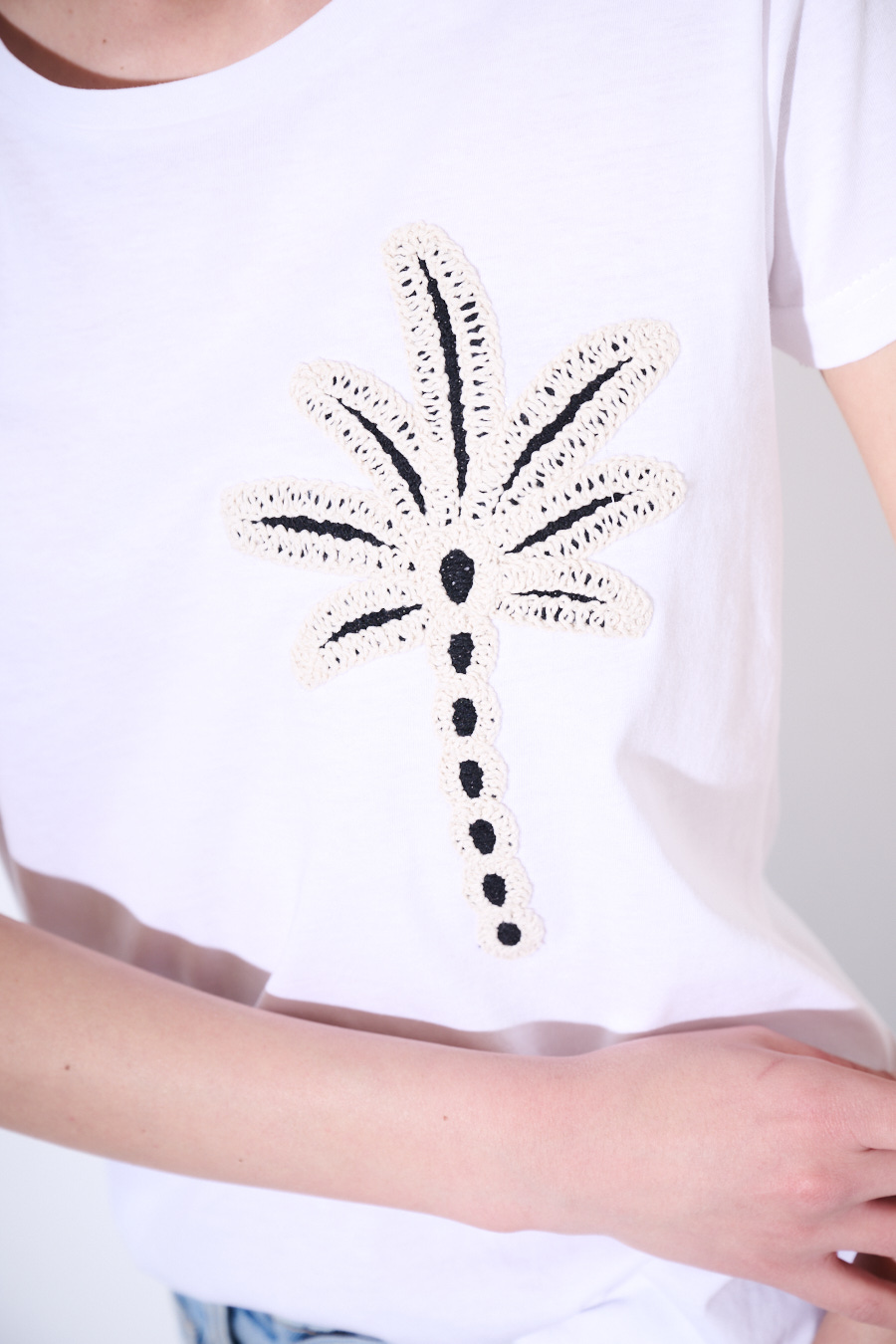 T-SHIRT BASIC CON APPLICAZIONE PALMA BIANCO