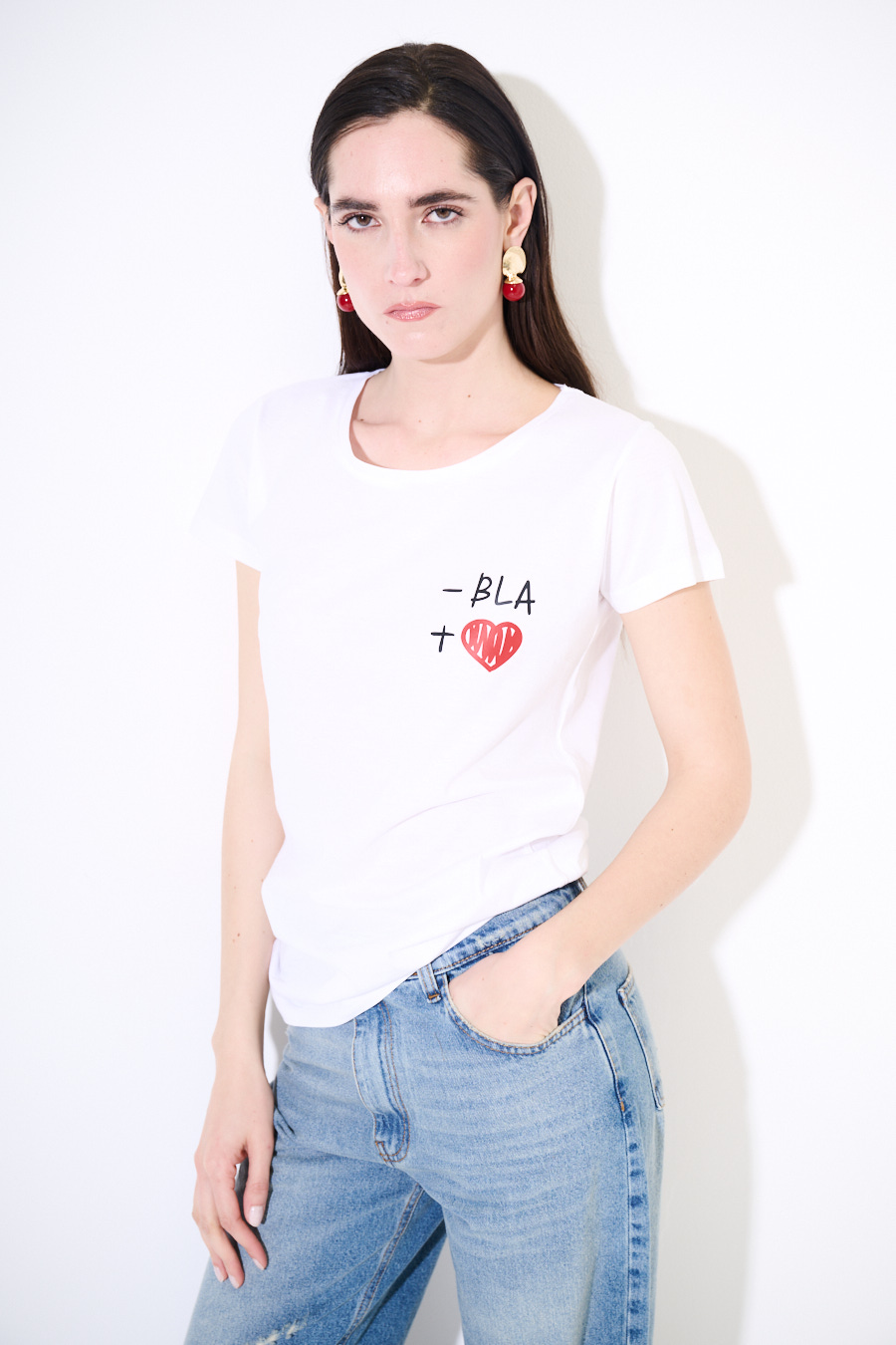 T-SHIRT BASIC CON STAMPA BLA E CUORE BIANCO