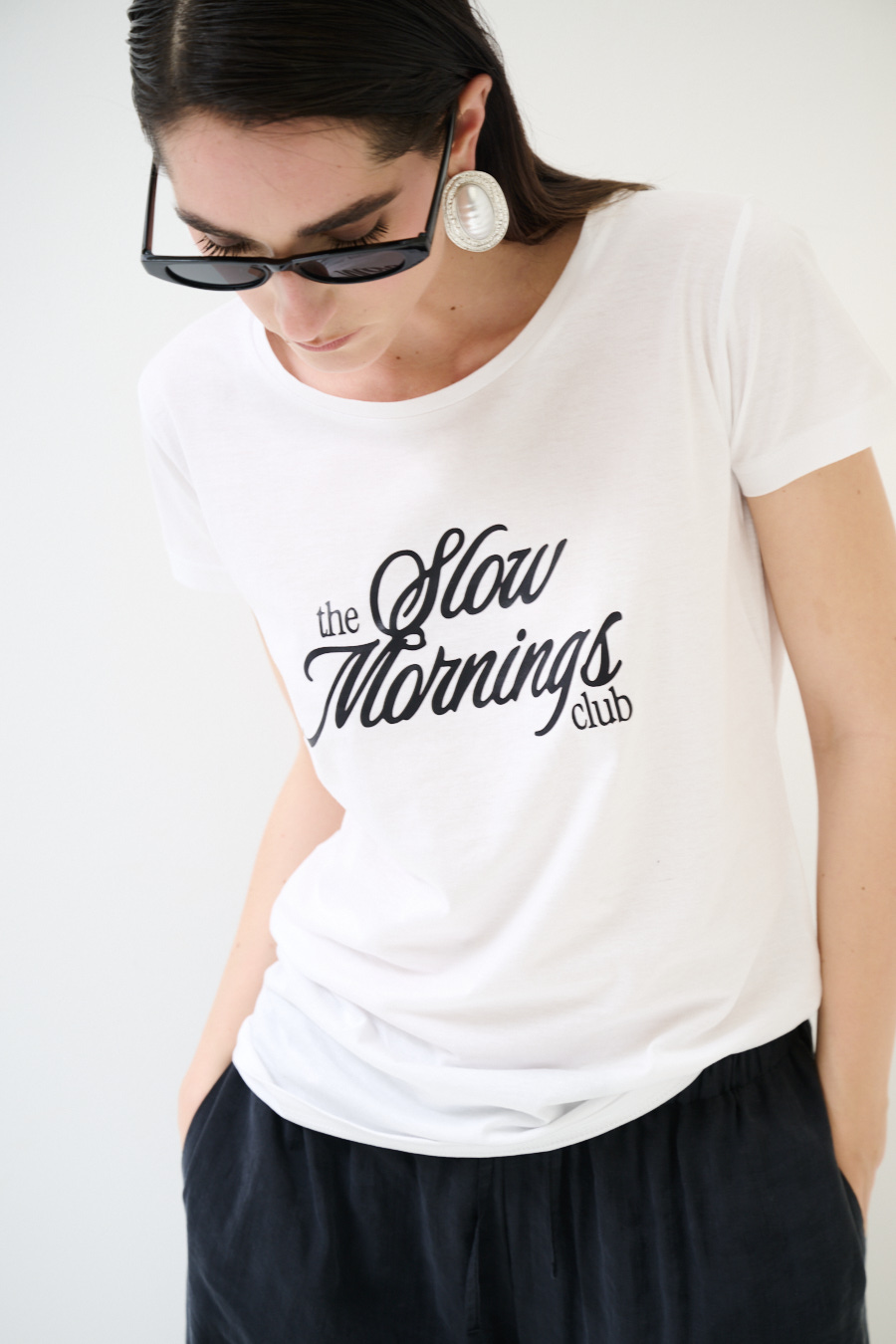T-SHIRT BASIC CON STAMPA SLOW MORNINGS