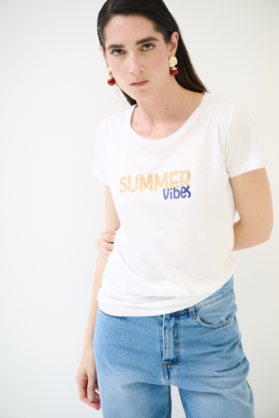 T-SHIRT BASIC CON STAMPA SUMMER VIBES BIANCO