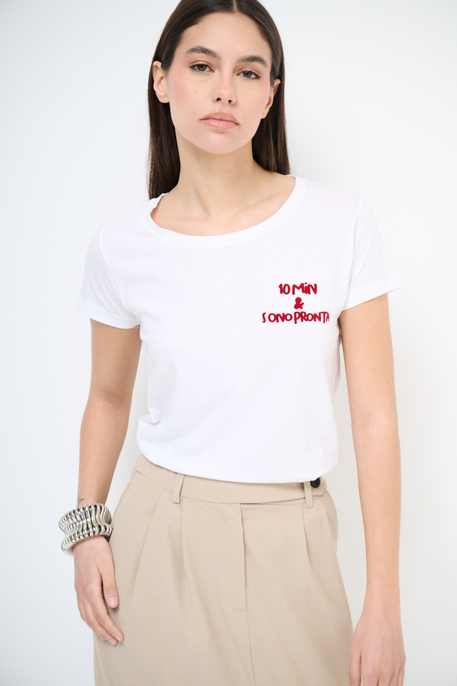 T-shirt basica con stampa '10 minuti e sono pronta