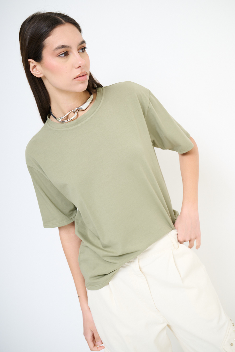 T-SHIRT BASIC TINTA UNITA VERDE MILITARE