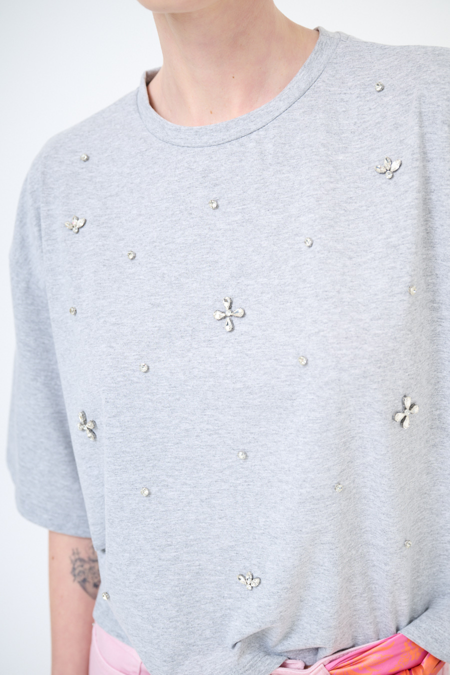 T-SHIRT CON APPLICAZIONE CASTONI GRIGIO CHIARO