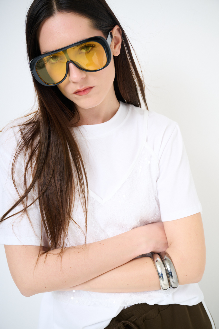 T-SHIRT IN COTONE CON TOP IN PIZZO