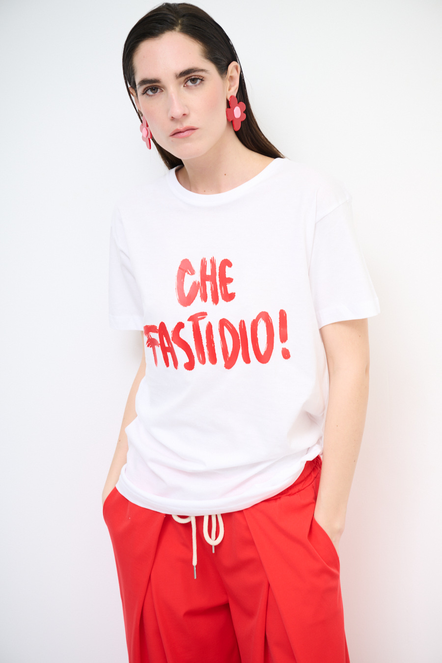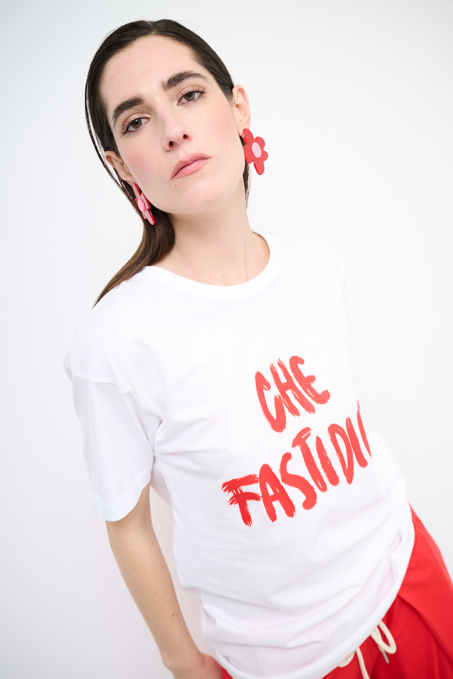 T-SHIRT OVER CON STAMPA CHE FASTIDIO ROSSO