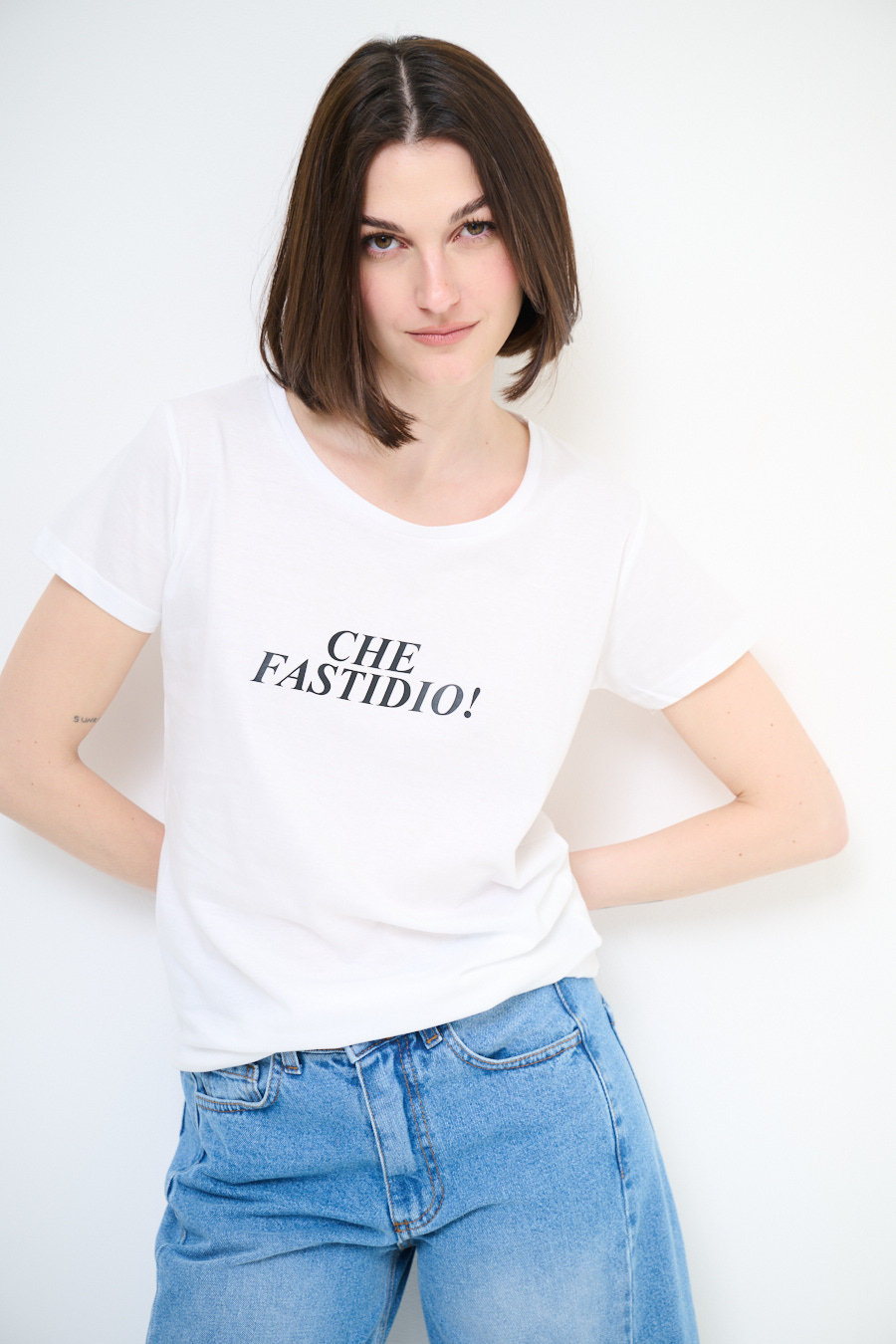 T-shirt basica a girocollo con stampa 'Che fastidio