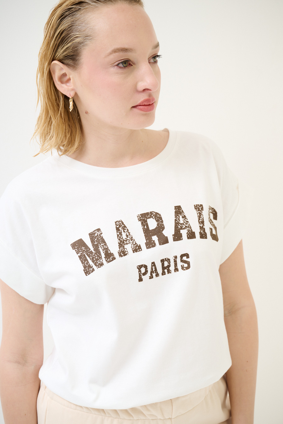 T-shirt boxy fit con stampa Marais Paris e maniche con risvolto